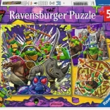 Detské puzzle s motívom Želvy Ninja od značky RAVENSBURGER ponúkajú tri samostatné skladačky po 49 dielikoch, ideálne na rozvoj trpezlivosti a sústredenia. Každý obrázok má po zložení rozmer cca 21 × 21 cm a je vyrobený z kvalitného, odolného kartónu pre presné a ľahké skladanie.