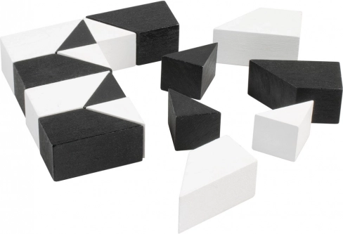 Tangram čiernobiely od značky Detoa prináša nekonečné množstvo kombinácií a variantov skladania. Úlohou je poskladať jednotlivé drevené dieliky do tvaru podľa predlohy – možností riešení je však viac, takže hra zostáva zábavná aj pri opakovanom hraní. Jednoduché pravidlá z neho robia skvelú voľbu pre deti aj dospelých.