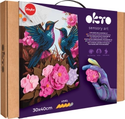 Vytvorte si vlastné umelecké dielo s kreatívnou sadou Okto – maľovanie podľa čísel a 3D modelovanie obrazu „Hummingbirds in Love“ vo veľkosti 30 × 40 cm. Kombinácia maľby a tvarovania dodá motívu kolibríkov plastický 3D efekt. Obťažnosť 4/5 poteší nadšených kreatívcov, ktorí hľadajú výzvu a kvalitný výsledok.