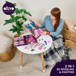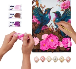 Obraz „Hummingbirds in Love“ v sebe spája relaxačné maľovanie podľa čísel a zábavné 3D modelovanie. Vďaka jasnému značeníu plátna a priloženému návodu zvládnete krok za krokom namaľovať detailný motív a následne vymodelovať vybrané prvky pre pôsobivý priestorový dojem.