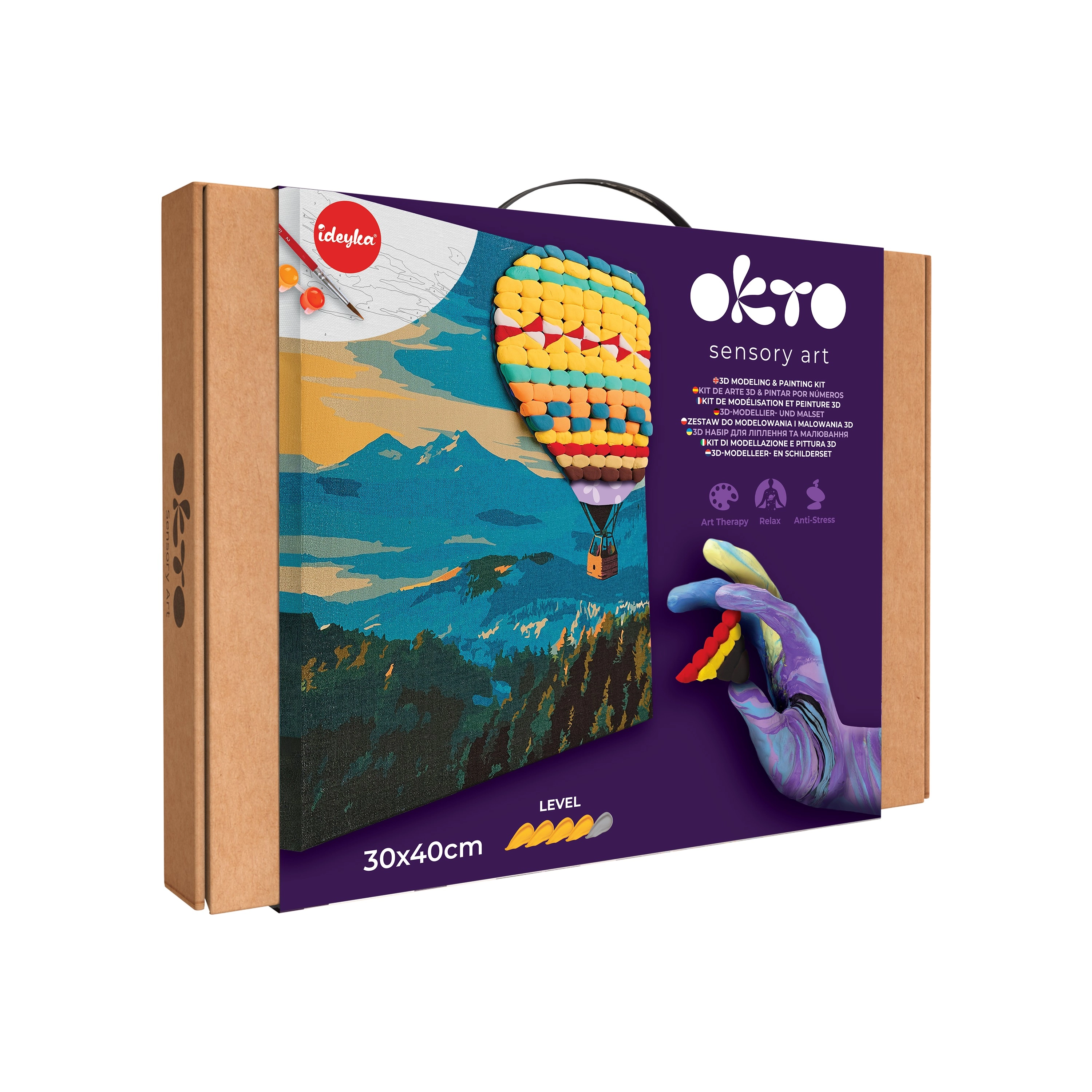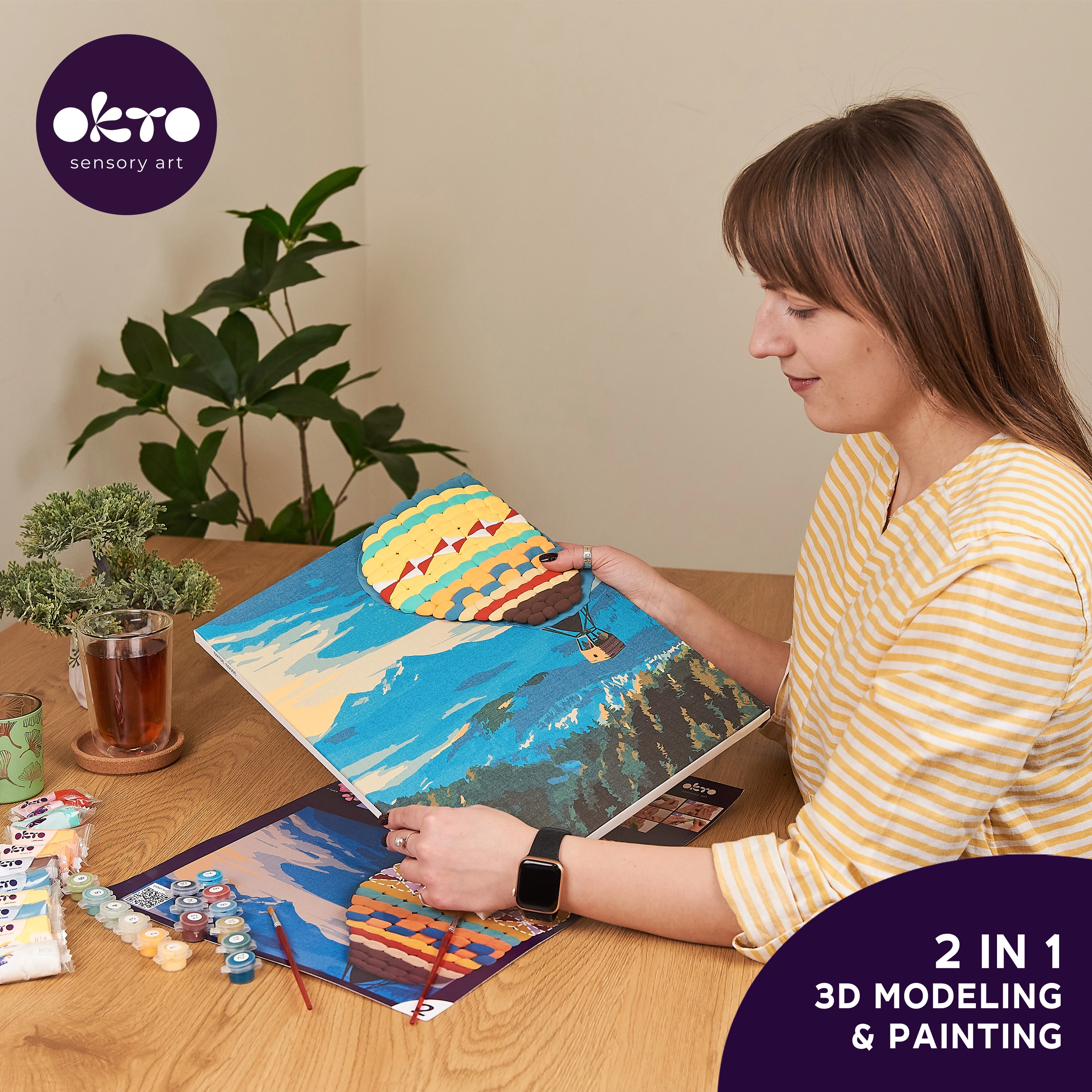 Objavte radosť z tvorenia s originálnym obrazom OKTO Hot Air Balloon Flight. Spojenie techniky maľovania podľa čísel a tvarovania 3D prvkov zaručuje jedinečný vizuálny výsledok, ktorý vynikne v každom interiéri. Ideálne na kreatívny oddych, rozvoj jemnej motoriky aj ako darček.