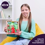 Vytvorte si vlastnú čarovnú scénu so škriatkom! Kreatívna sada od značky OKTO obsahuje všetko potrebné na vytvorenie 3D dekorácie v drevenom rámčeku 21 × 21 cm – od samoschnúcej modelovacej hmoty po akrylový lak a modelovací nástroj. Jednoduché tvorenie podľa obrázkového návodu zvládnu deti aj začiatočníci.
