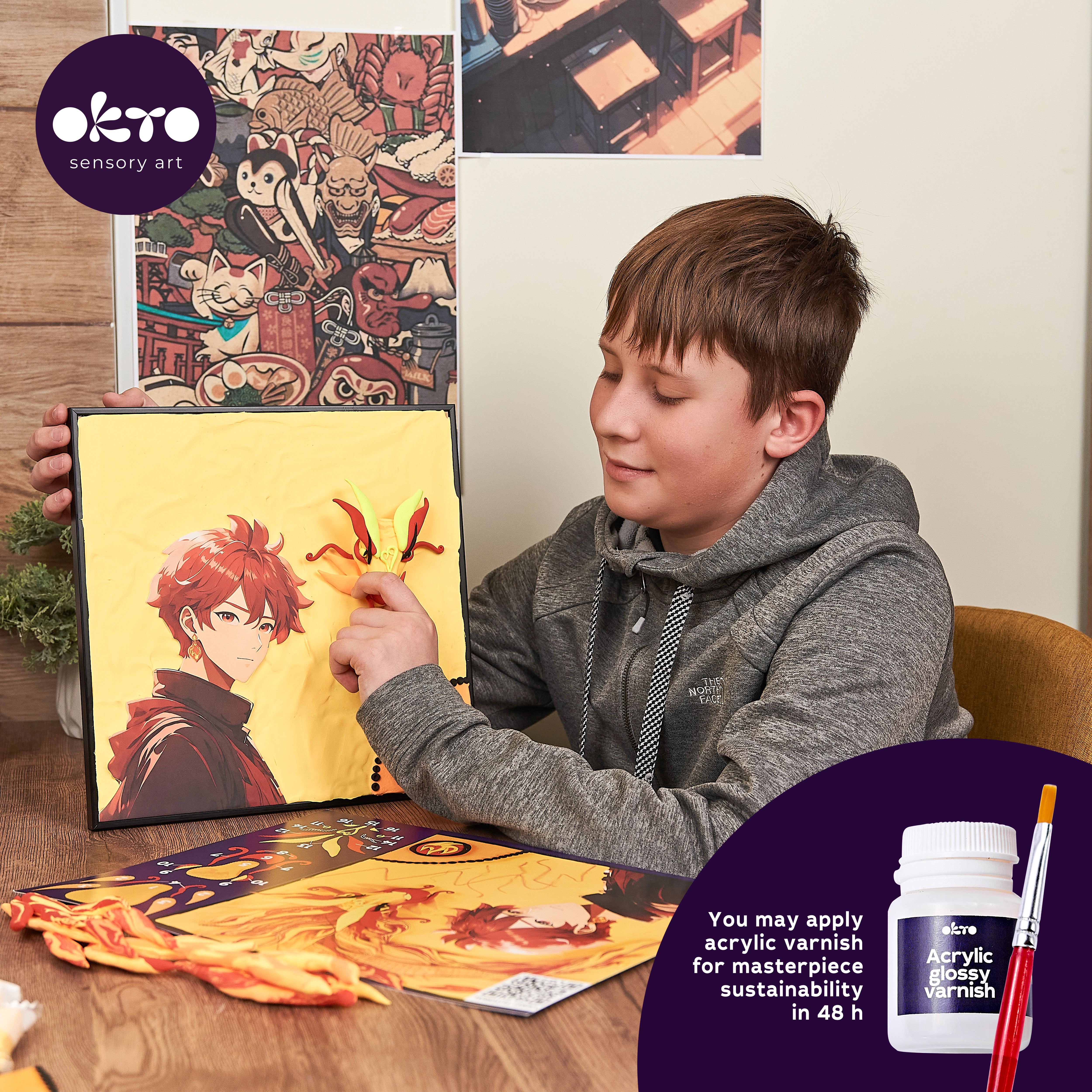 Milujete manga štýl a chcete si vyzdobiť interiér originálnym dielom? Sady OKTO vám umožnia ľahko vytvoriť vlastný obraz s motívom živlu Oheň. Vďaka prehľadnému obrázkovému návodu a kompletnému príslušenstvu je projekt vhodný aj pre začiatočníkov.