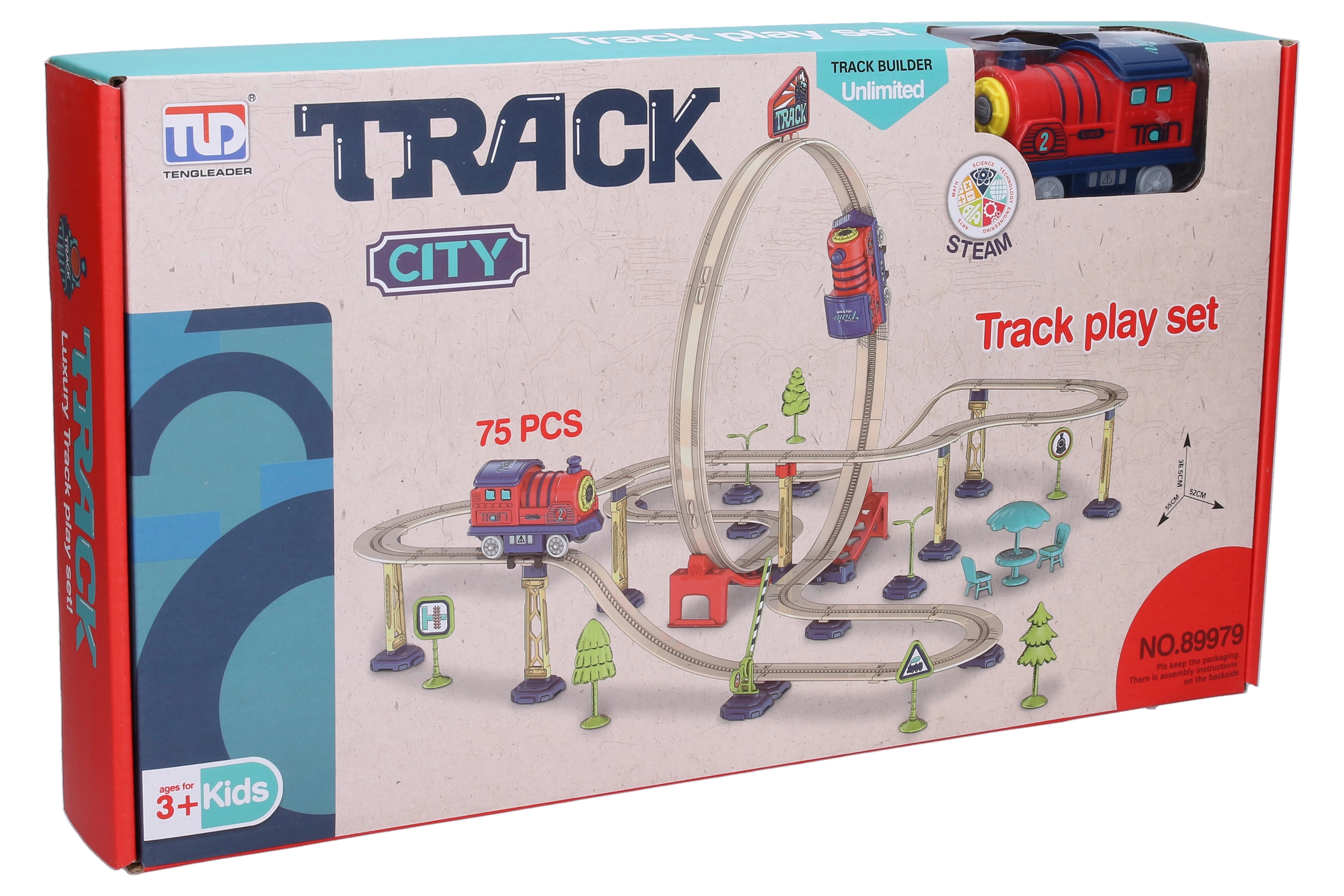 Táto vlaková dráha so slučkou je ideálnou voľbou pre deti, ktoré milujú vlaky a akčnú jazdu. Sada obsahuje všetko potrebné na rýchle zostavenie a jednoduché ovládanie – elektrická lokomotíva sa spúšťa jednoduchým stlačením komína. Vďaka premyslenému dizajnu dráha spája zábavu s rozvojom jemnej motoriky a kreativity.