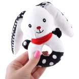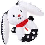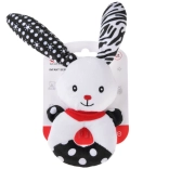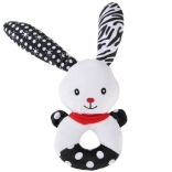 Táto mäkká kontrastná hračka kombinuje funkciu hrkálky, píšťalky aj prvej maznacej hračky. Guľatý, ľahko uchopiteľný tvar s otvorom uprostred, vystúpenou hlavičkou a dlhými uškami pomáha trénovať jemnú motoriku a koordináciu ruka–oko. Kontrastné čiernobiele motívy sú pre bábätká skvele viditeľné a priťahujú ich pozornosť.