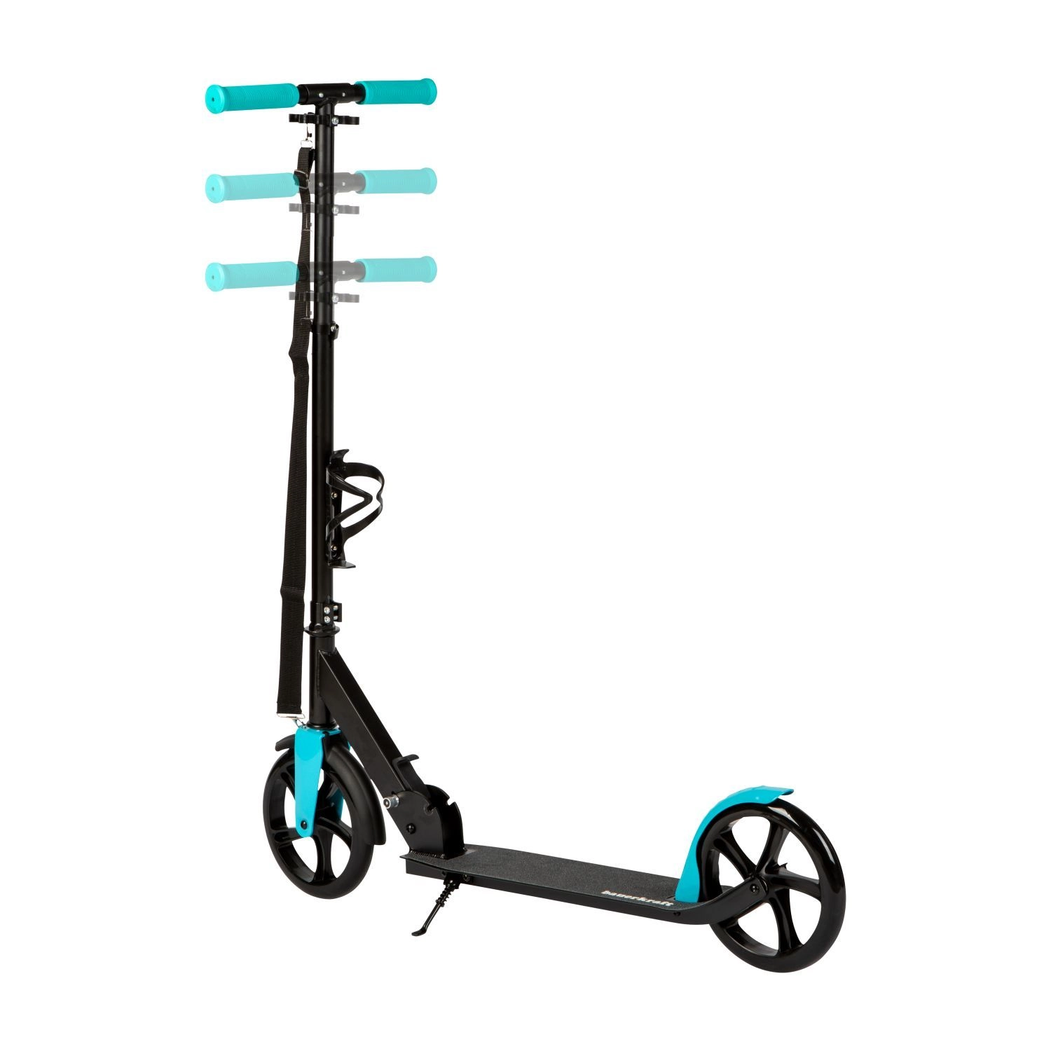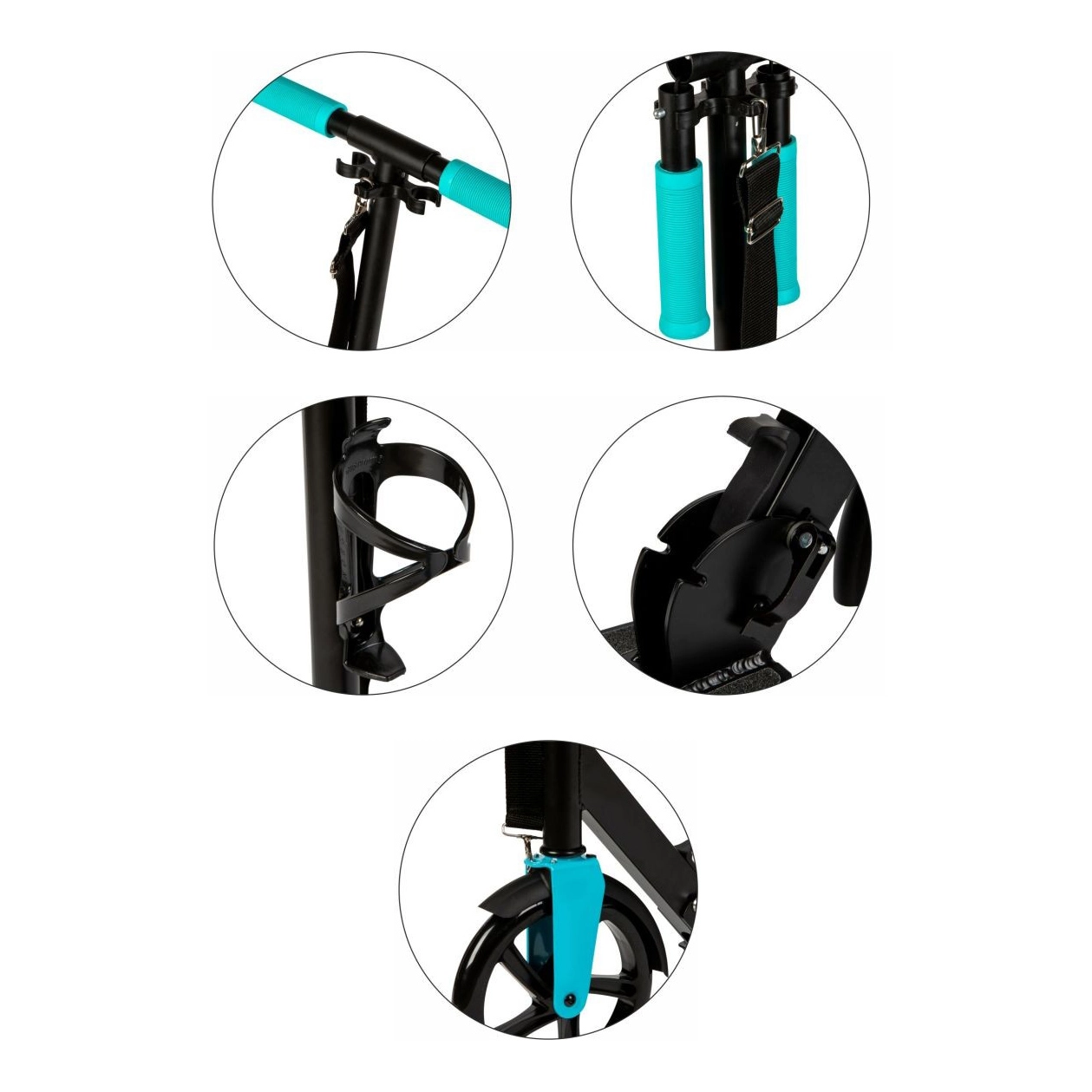 Kolobežka rastie s používateľom – prestviteľné riadidlá v rozsahu 91–101 cm zabezpečia správnu ergonómiu a isté ovládanie v každom veku. Ergonomické protišmykové gripy zvyšujú komfort a kontrolu, držiak na fľašu zasa uľahčí dodržiavanie pitného režimu na dlhších trasách.