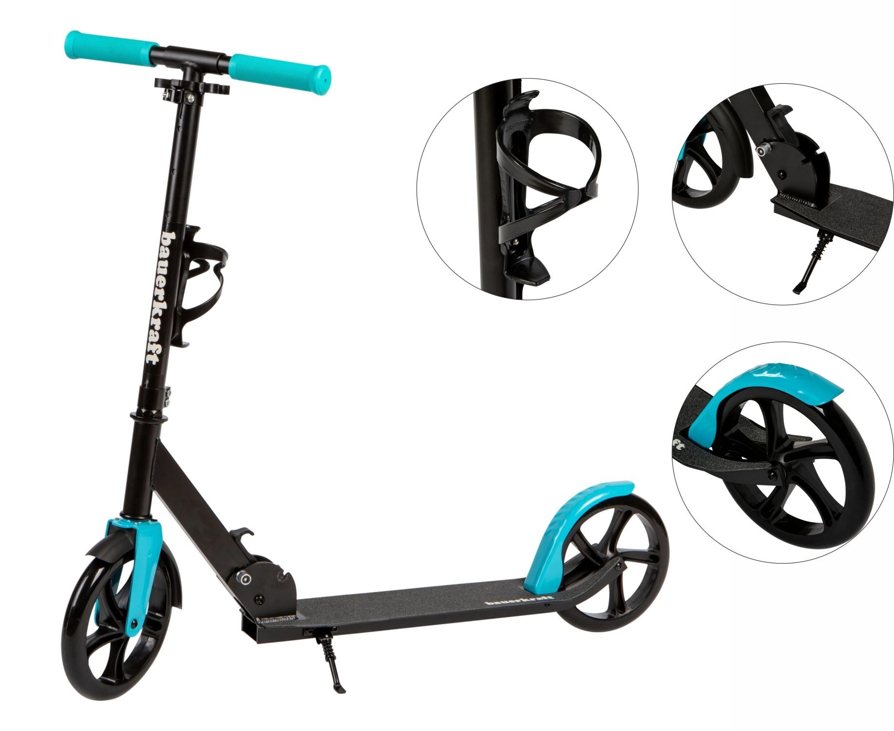 Ergonomické protišmykové gripy, zadný blatník s brzdou, integrovaný stojan a praktický držiak na fľašu pre pohodlné a bezpečné výlety.