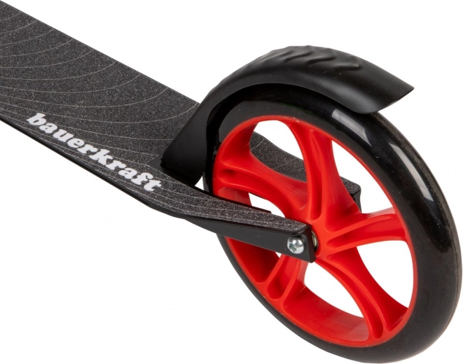 Vyrazte do mesta bez obmedzení. Táto kolobežka je ideálna na cestu do školy aj voľnočasové jazdenie po asfalte, chodníkoch či cyklotrasách. Vďaka veľkým 200 mm kolesám s ložiskami ABEC-7 sa hladko odvaľuje a zostáva stabilná. Praktický stojan uľahčí parkovanie a zadný blatník s brzdou ochráni oblečenie pred striekajúcou vodou.