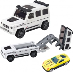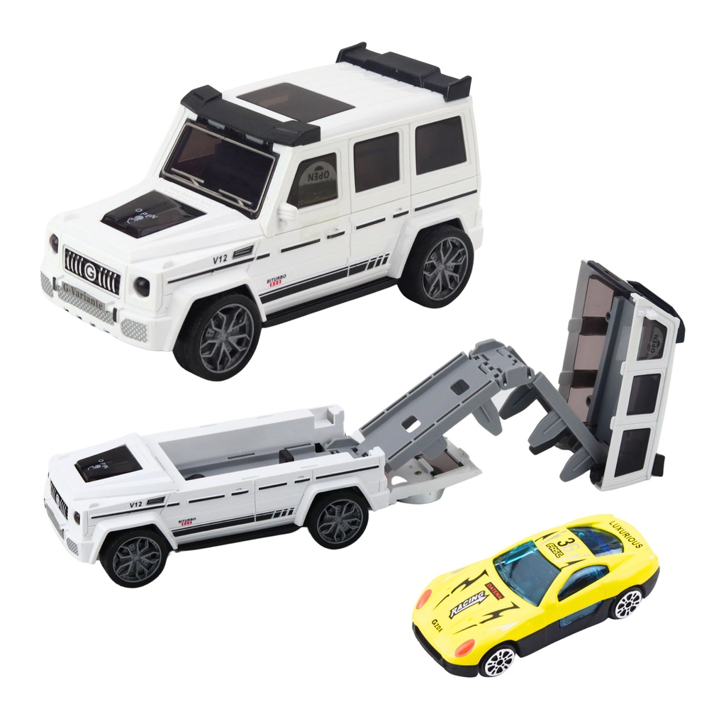 Zábavná sada pre malých pretekárov: robustné terénne auto sa po rozložení premení na dráhu s vystreľovačom pre skryté mini autíčko. Nechýbajú svetelné a zvukové efekty, dve farebné varianty (biela, modrá) a bezpečné, odolné prevedenie pre dlhodobú hru.