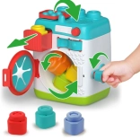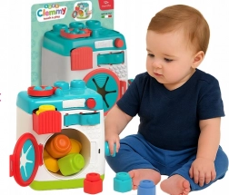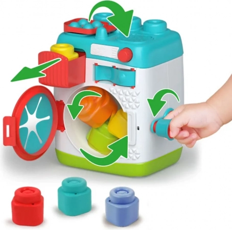 Zoznámte sa s kúzelnou hračkou, ktorá spája interaktívnu mechanickú akciu s bezpečnými, mäkkými kockami Clemmy. Deti otáčaním bočného kolieska pozorujú „prací“ efekt a prirodzene trénujú koordináciu oko–ruka aj logické myslenie. Realistický vzhľad práčky zároveň inšpiruje k hrám na domácnosť.