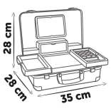 Kufrík je navrhnutý na jednoduché prenášanie: má 2 bezpečné západky, praktické ucho, skutočné zrkadielko a tajný úložný priestor na drobnosti. Vysúvacie poličky šetria miesto a poskytujú ďalší priestor na uloženie všetkých doplnkov.