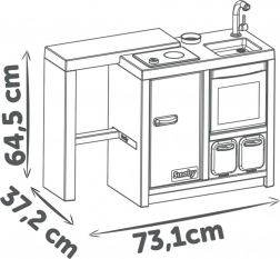 Realistické detaily, ako je platňa s klikacím tlačidlom, rúra s dvierkami, chladničkový priestor či drez s kohútikom, dodávajú hre na autentickosti. Bohatá sada 23 doplnkov (panvička so zapaľovaním, hrniec s pokrievkou, palacinka, porcia cestovín, mlynček na soľ a korenie, riad a príbory) ponúka všetko potrebné pre každodenné kulinárske dobrodružstvá.