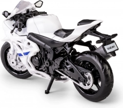 Detailne prepracovaný model motocykla SUZUKI GSX‑R1000 v mierke 1:18 je ideálnou voľbou pre zberateľov, nadšencov do supersportov aj ako štýlový darček. Kombinuje kvalitné materiály s autentickými detailmi a pôsobivým lakom v bielej farbe.