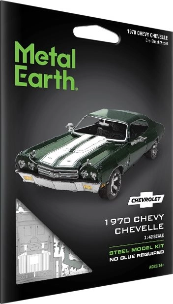 Objavte čaro kovových stavebníc METAL EARTH a vytvorte si vernú miniatúru legendárneho muscle caru 1970 Chevrolet Chevelle. Diely sa vyberajú z nerezových plátkov a spájajú sa pomocou zámkov – bez kvapky lepidla. Precízne laserové gravírovanie dodáva modelu autentický vzhľad.