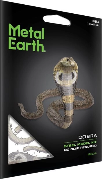 Kovové 3D puzzle METAL EARTH – Cobra je dizajnová stavebnica pre všetkých, ktorí milujú výzvy a precízne modely. Z plochých oceľových štvorcov vyberiete jednotlivé diely a bez lepidla ich spojíte do efektného modelu s autentickou textúrou šupín vďaka laserovému gravírovaniu. Hotový model sa stane neprehliadnuteľnou dekoráciou na poličke, v kancelárii aj v zbierke.