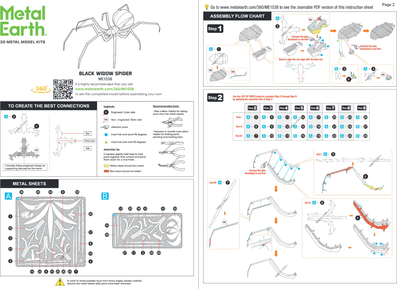 METAL EARTH prináša kovové 3D puzzle, ktoré z plochých oceľových plátkov premeníte na pôsobivý model čiernej vdovy. Diely sa z plátkov jednoducho vyjmú a spájajú sa pomocou zámkov – bez lepidla. Vďaka detailnému laserovému gravírovaniu vyniknú realistické textúry tela aj nôh a hotový model sa stane skvelou dekoráciou, darčekom i zberateľským kúskom.