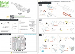 Skladanie je intuitívne: dieliky sa spájajú ohnutím malých „jazýčkov“ do otvorov. Pre pohodlnejšiu prácu odporúčame malé štípacie kliešte a jemné ploché klieštiky (nie sú súčasťou). Výsledkom je odolná kovová miniatúra s veľkosťou cca 9,7 × 2,3 × 3,1 cm, ktorá poteší začiatočníkov aj skúsených tvorcov.
