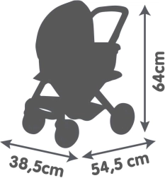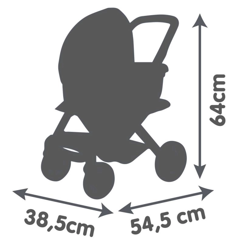 Kočík ponúka plynulé ovládanie s otočnými prednými kolieskami a tichý chod kolies s protihlukovou vrstvou. Odolné poťahy z plastovej tkaniny sa ľahko udržiavajú – stačí ich utrieť vlhkou handričkou. Vďaka ergonomickej rukoväti (65 cm) je pohodlný pre deti rôzneho veku. Vhodný pre bábiky do 42 cm.