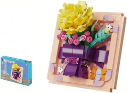 Stavebnica Oddych jari: kvety v rámiku – dekoratívna 3D mozaika z kociek