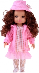Šaty v bielo-ružovej kocke s tylovým volánom, čipkované pančušky a zladené doplnky premenia bábiku na malú dámu. Outfit je ideálny na „slávnosti“, návštevy aj každodenné hranie.