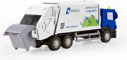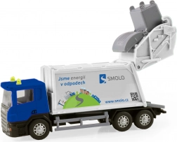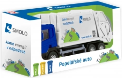 Realistické smetiarske auto s logom SMOLO poteší malých fanúšikov techniky aj zberateľov. Ponúka kovovú kabínu, plastovú korbu s vyklápacími zadnými dverami, otváraciu popolnicu a spätný chod. Kompaktná dĺžka 15 cm je ideálna na hru doma aj na cestách.