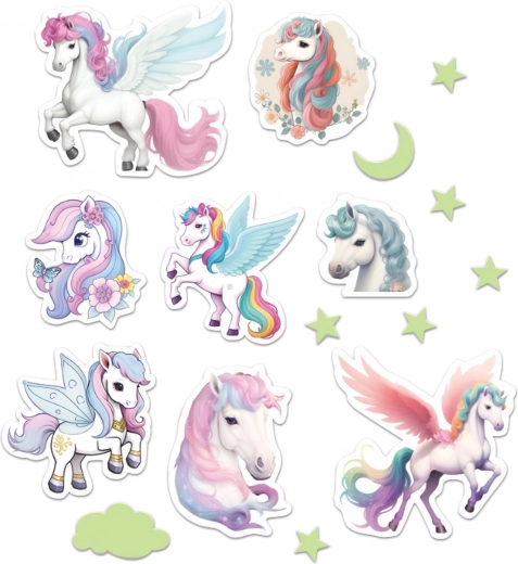 Vytvorte magickú atmosféru pomocou samolepiacej dekorácie s jednorožcami. Cez deň poteší veselými farbami a v noci jemne fosforeskuje, takže deti sa budú cítiť pokojnejšie a bezpečnejšie.