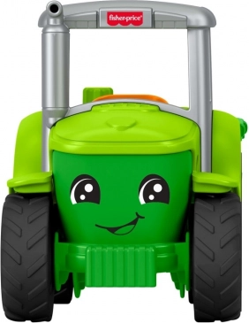 Veselý traktor LITTLE PEOPLE je ideálny spoločník pre prvé farmárske príbehy. Stačí stlačiť sedadlo vodiča alebo tlačidlo na prívese a ozvú sa melódie a zvuky, ktoré deti motivujú k pohybu a objavovaniu. Súčasťou je figúrka farmára a jeho psíka, ktorí sa pohodlne zmestia do traktora aj na príves.