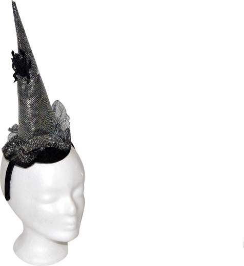 Štýlový čierny špicatý klobúk na čelenke je ideálny doplnok ku kostýmu čarodejnice na večierok, karneval aj Halloween. Vďaka pohodlnej čelenke dobre drží na hlave a ľahko sa nasadzuje. Ľahký materiál, pevná fixácia a univerzálna veľkosť z neho robia praktický a efektný doplnok pre deti aj dospelých.