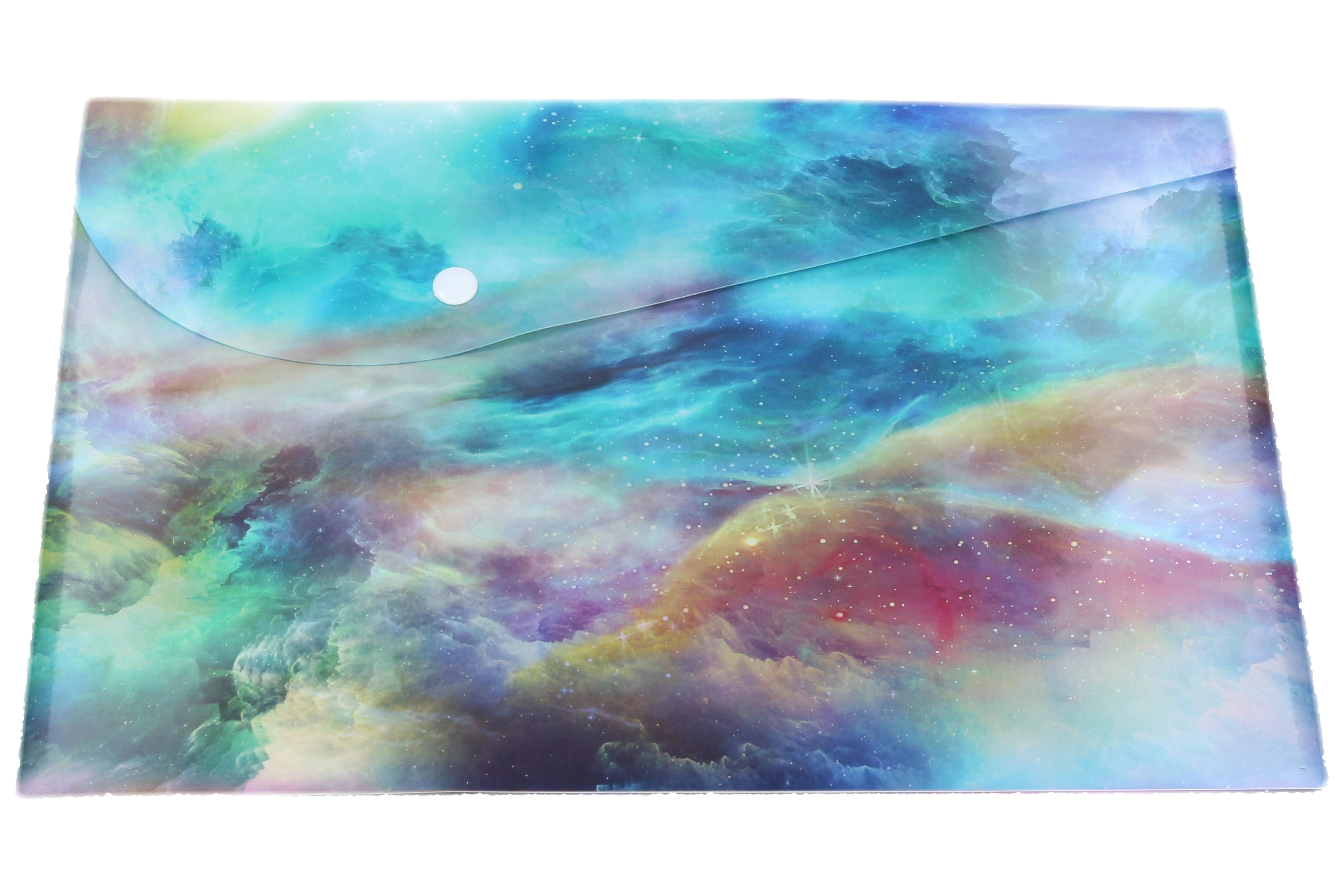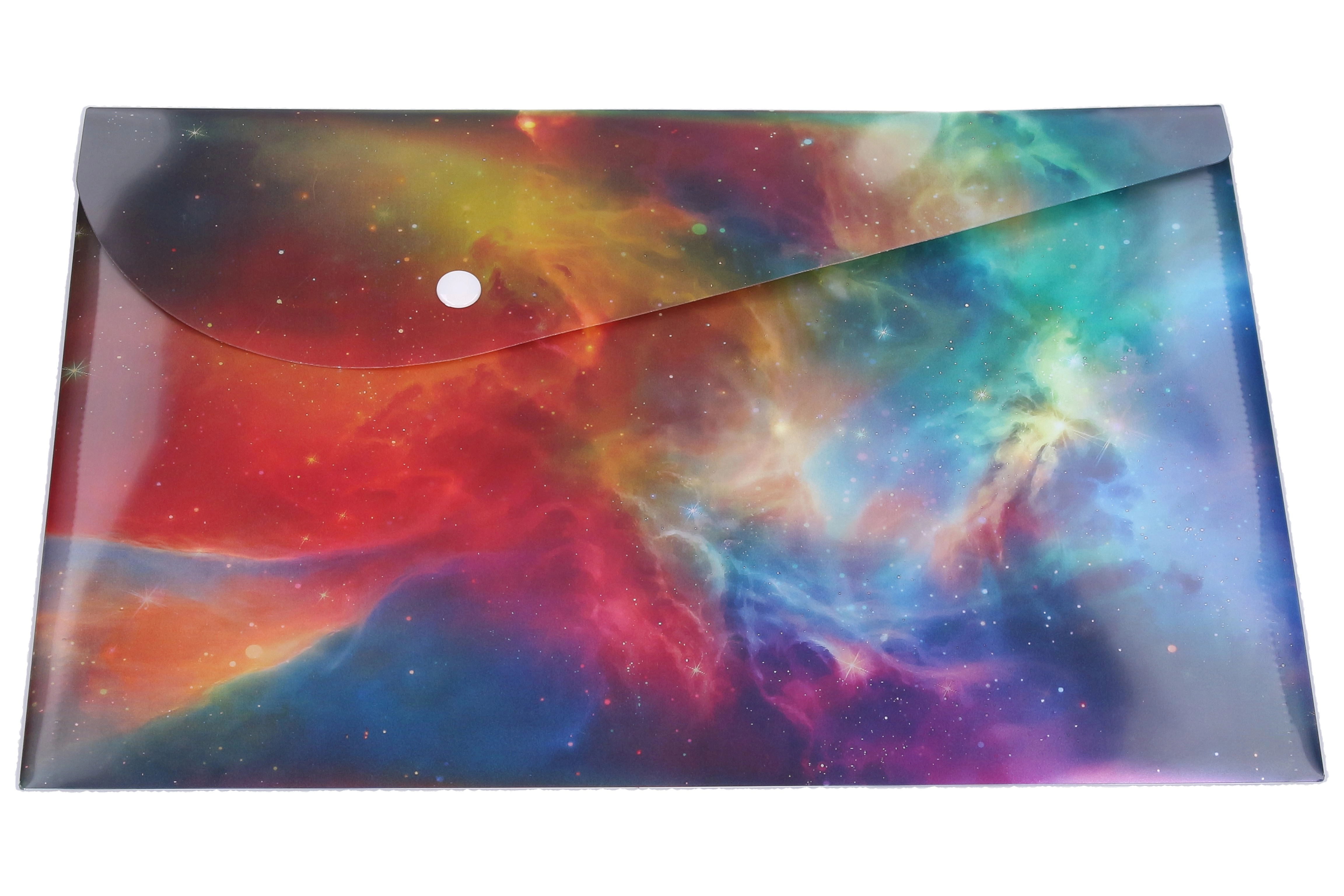 Vesmírny dizajn s motívmi galaxií dodá vašim pracovným materiálom originálny vzhľad. Puzdro je ideálne na organizáciu dokumentov A4, účteniek, pracovných listov aj školských zošitov. Vďaka polopriehľadnému materiálu ľahko uvidíte, čo je vo vnútri, a pritom je obsah chránený.