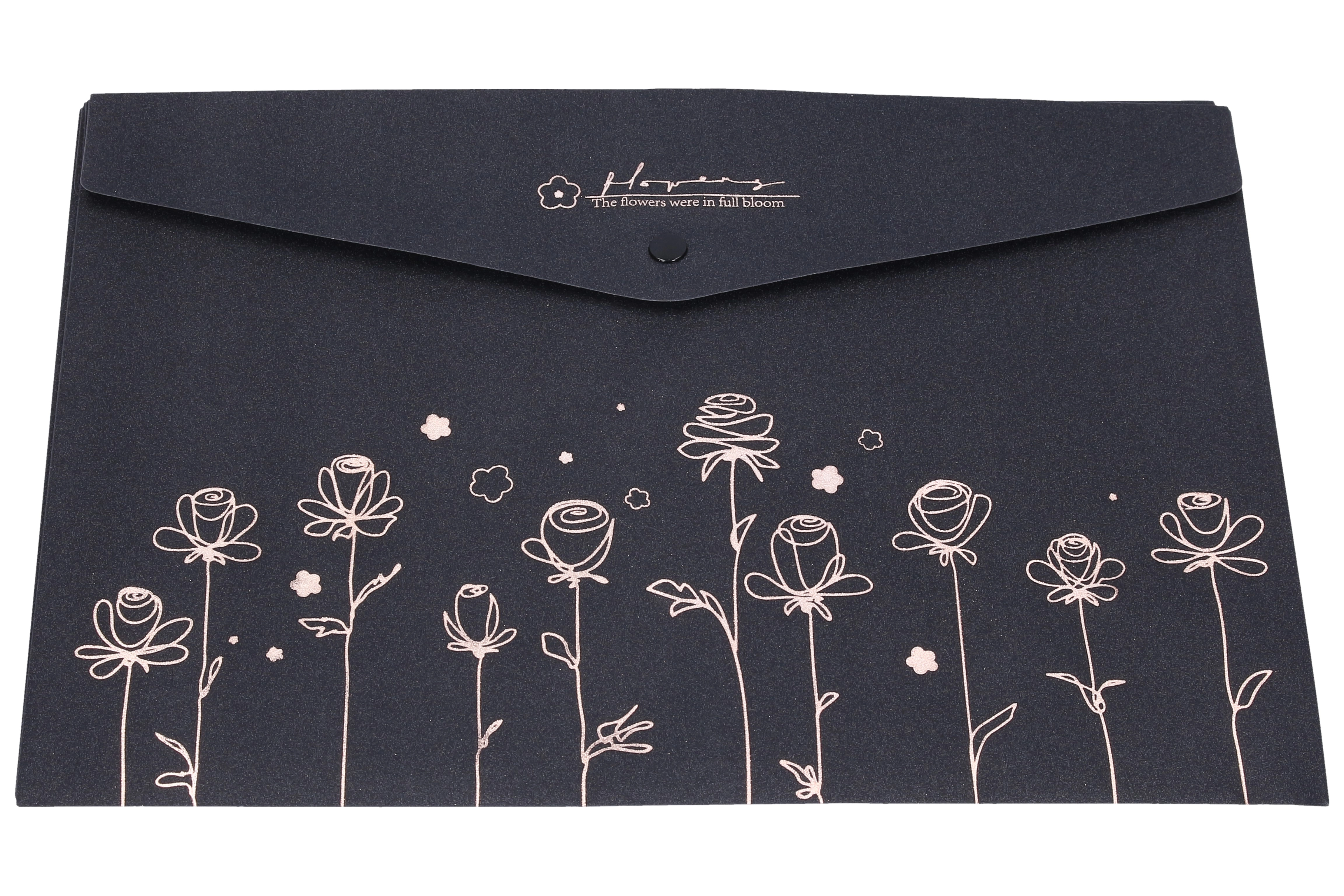 Decentný kvetinový motív v tmavom prevedení dodá vašim pracovným materiálom štýl, pričom zachová profesionálny vzhľad. Vyberať si môžete zo 4 dizajnových variantov, ktoré sa skvele hodia do školy, kancelárie aj domáceho archívu.