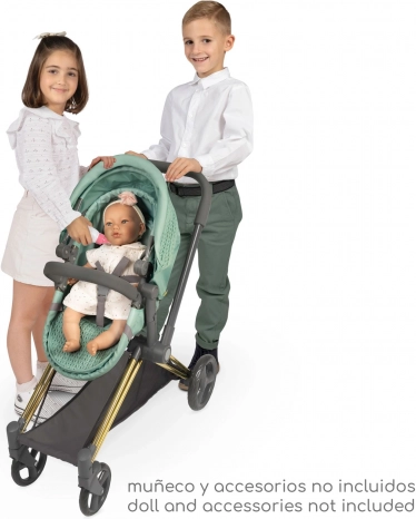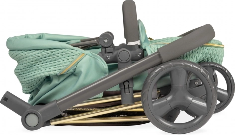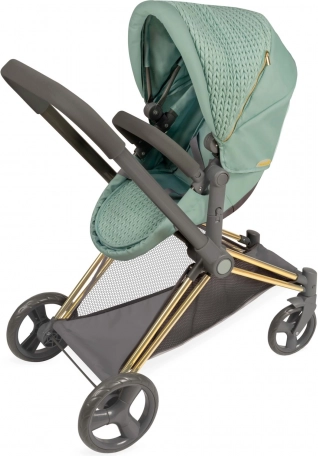 Tento štýlový kočík pre bábiky vyniká kombináciou modernej mentolovej látky a ozdobných detailov vrátane zlatých prvkov. Vďaka premyslenej konštrukcii ho ľahko premeníte z hlbokej vaničky na športovú verziu a naopak. Vyššie madlo (73 cm) zaisťuje pohodlné ovládanie aj pre predškolské deti.