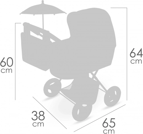 Kočík je skvelo vybavený na každodenné hranie – od skladacieho slnečníka cez odnímateľnú tašku so zlatými zipsami až po mäkký matrac a priestranný kôš na drobnosti. Precízne spracovanie a španielsky dizajn podčiarkujú jeho kvalitu a dlhú životnosť.
