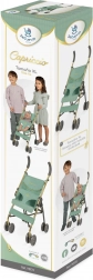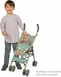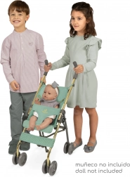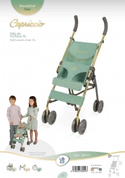Elegantný kočík pre bábiky v štýle golfových palíc má rafinované textilné spracovanie v kombinácii imitácie úpletu a hladkej látky. Tmavosivý rám so zlatými detailmi a výšivkou CAPRICCIO podčiarkuje prémiový vzhľad. Výška k rukoväti 75 cm skvelo vyhovuje predškolským deťom.