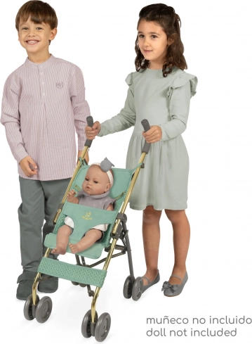 Štýlový a praktický skladací kočík pre bábiky z kolekcie CAPRICCIO v modernej mentolovo zelenej farbe ponúkne jednoduchú manipuláciu, stabilnú kovovú konštrukciu a trojbodový pás pre bezpečné uchytenie bábiky. Vďaka kompaktným rozmerom je ideálny na cesty aj do interiéru.