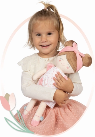 Plyšová bábika Tulipe z novej kolekcie 2025 zaujme harmonickou paletou teplých pastelových odtieňov a nežným kvetinovým vzorom. Vďaka mäkkému, hladkému a lesklému plyšu je príjemná na dotyk a skvelá do postieľky aj na cesty. Nízka hmotnosť a kompaktné rozmery uľahčujú deťom manipuláciu a podporujú jemnú motoriku a fantáziu pri hraní.