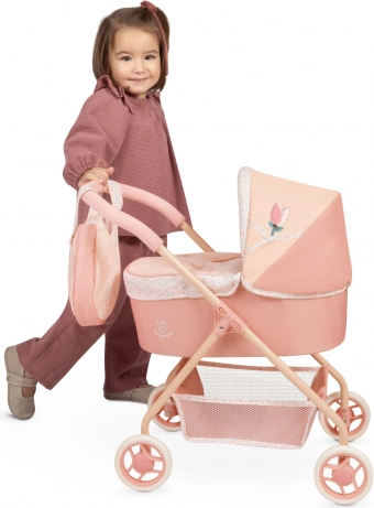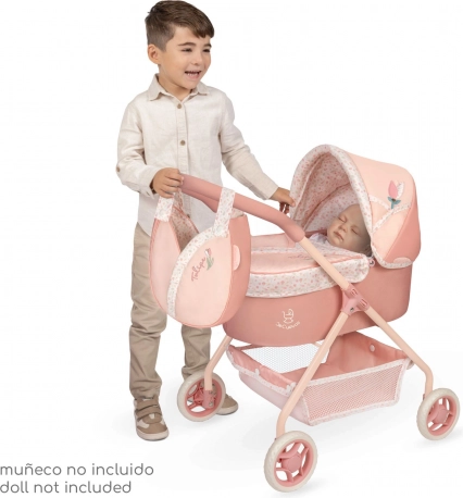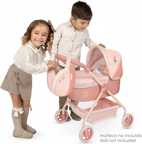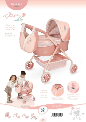 Očarujúci kočík pre bábiky z kolekcie Tulipe prináša kombináciu nádherného španielskeho dizajnu a praktickosti na každodenné hranie. Jemné lososové pastelové farby s kvetinovým vzorom a tematická taška v tvare tulipánu z neho robia skvelý darček pre deti od 3 rokov.
