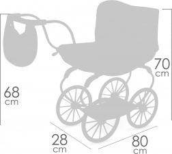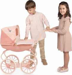 Praktické pružiny umožňujú hojdanie, skladacia strieška chráni bábiku a veľké kolesá zabezpečujú stabilitu pri prechádzkach.