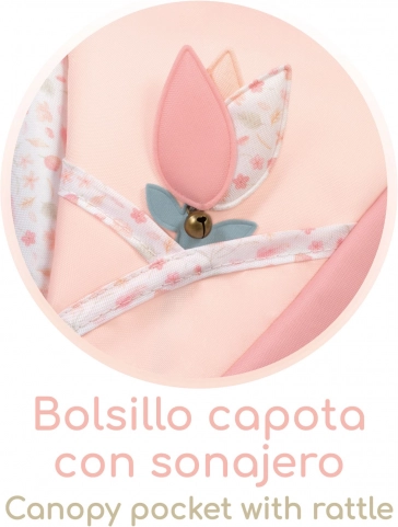 - Odnímateľná taška v tvare tulipánu, kryt vaničky s očkami a vreckom, vrecko na strieške s rolničkou, matrac, úložný priestor