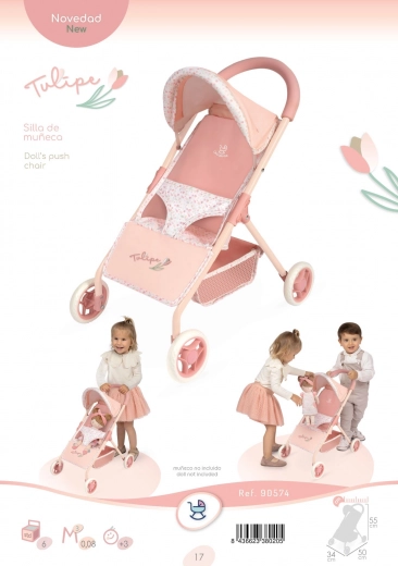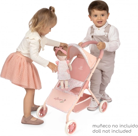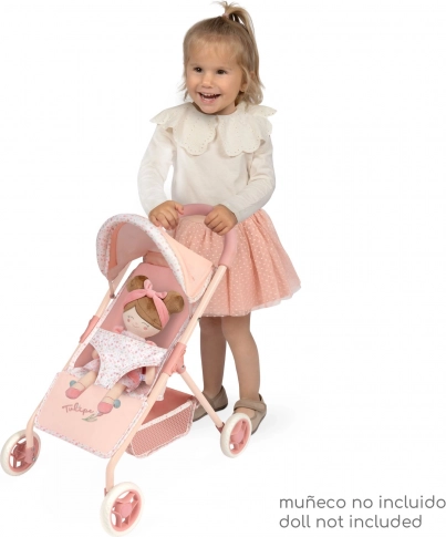 Elegantný športový kočík pre bábiky z kolekcie Tulipe zaujme svojím španielskym dizajnom, precíznym spracovaním a ľahkou manipuláciou. Ľahká konštrukcia s trojbodovým pásom, praktickým úložným košom a výškou rukoväti 55 cm je ideálna pre menšie deti. Štýlový kvetinový motív v teplých pastelových tónoch doplní každú detskú hru.
