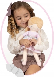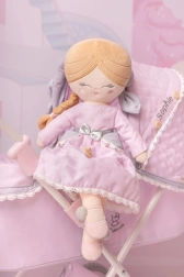 Kolekcia SOPHIE pre rok 2025 vyniká romantickým vzhľadom v jemnej ružovej farbe, doplnenej o čipky a mašličky v svetlosivej a bielej. Bábika je balená v ochrannom obale, takže je pripravená na darovanie.