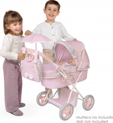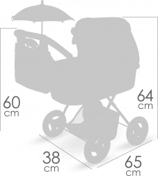 Súčasťou je praktický slnečník, odnímateľná taška a kryt na korbičku s očkami pre pevné uchytenie. Mäkký matrac a priestranná korbička poskytnú bábike pohodlie, zatiaľ čo spodný košík ponúkne miesto na drobnosti a doplnky.