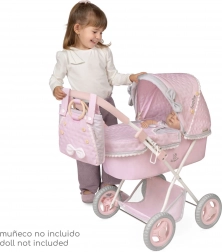 Objavte romantický kočík pre bábiky z kolekcie SOPHIE s nežnými čipkami a mašličkami. Svetloružová farba v kombinácii so sivými a bielymi detailmi pôsobí čarovne a podčiarkuje španielsky dizajn a precízne spracovanie. Skladací mechanizmus zaistí pohodlné uloženie aj prenášanie, takže je kočík pripravený na hry doma aj vonku.