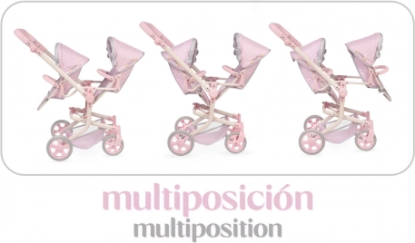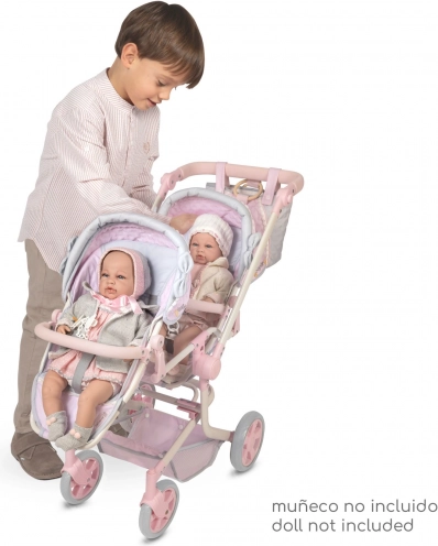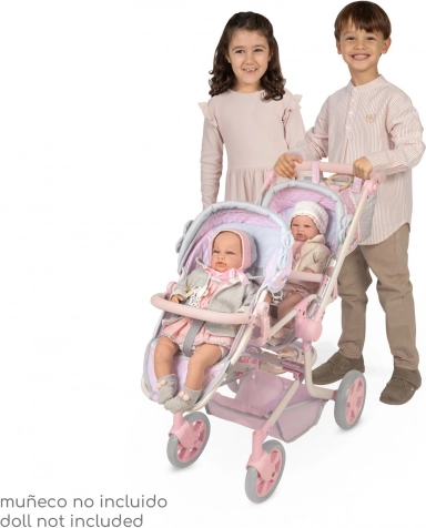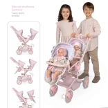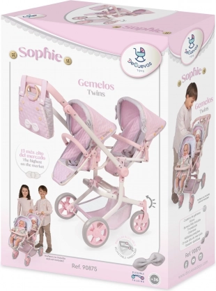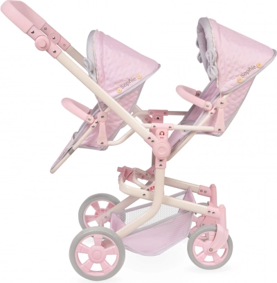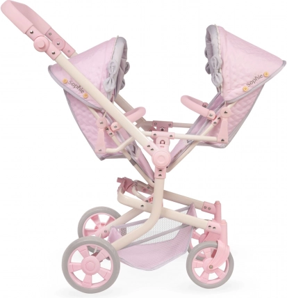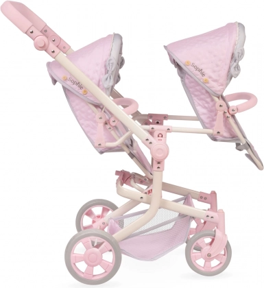 Hravý aj praktický – tento skladací kočík pre bábiky je navrhnutý na pohodlné vozenie dvoch bábik naraz. Vďaka polohovateľným a odnímateľným vaničkám možno bábiky umiestniť po aj proti smeru jazdy. Ľahký kovovo-plastový rám, mäkké textílie a jemný romantický vzhľad kolekcie SOPHIE z neho robia skvelý doplnok detskej izbičky.