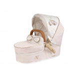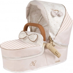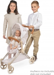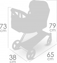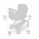 Kočík je skladací, po zložení zaberie minimum miesta a je praktický na prevoz. Odnímateľná prenosná vanička umožní bezpečne prenášať bábiku, zatiaľ čo polohovacia strieška, trojbodové pásy a otočné predné kolieska zaistia pohodlnú a plynulú jazdu. Súčasťou je štýlová taška a spodný košík na všetko potrebné.