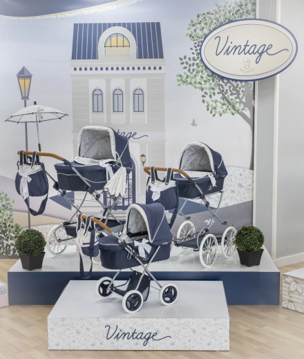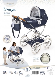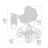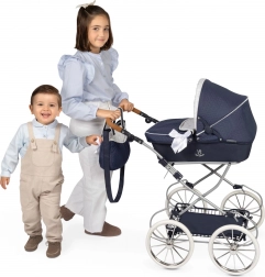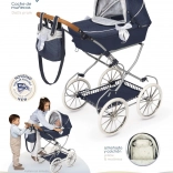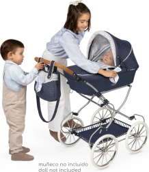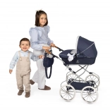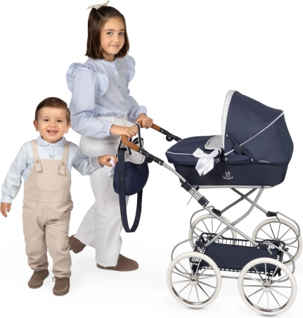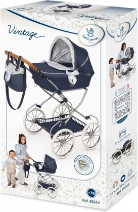 Objavte nadčasový štýl a pohodlie s kočíkom pre bábiky DE CUEVAS Vintage 2025. Kombinácia tmavomodrej a ľadovo bielej s jemnou potlačou, ozdobné mašle a kvalitné materiály vytvárajú luxusný retro vzhľad inšpirovaný reálnymi detskými kočíkmi. Vďaka plynulému hojdaniu na pružinách a mäkkému vybaveniu bude každá prechádzka s bábikou potešením.