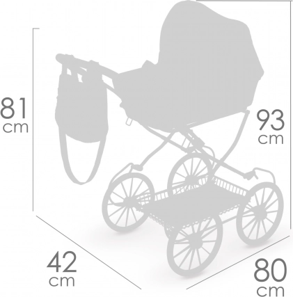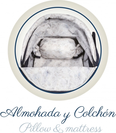Kočík je skladací, veľmi ľahko sa ovláda a rastie s dieťaťom vďaka 6 polohám rukoväti (52–81 cm). Praktická výbava zahŕňa prešívaný kryt vaničky na patentky, matrac a vankúšik, priestranný úložný kôš a dizajnovú tašku na kočík aj cez rameno. Precízne spracovanie a španielsky dizajn z neho robia skvelú voľbu ako na hru, tak aj na zberateľské účely.