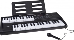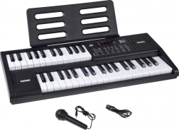 Súčasťou balenia je mikrofón a stojan na noty. Klávesy sú kompaktné, so zabudovanými reproduktormi a jednoduchým ovládaním – ideálne na domáce muzicírovanie, cvičenie sprievodu aj prvé vlastné skladby.