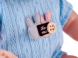 Bábika má pohyblivé končatiny a hlavičku, takže ju možno posadiť alebo uložiť na spánok. Oblečenie tvorí mäkké pletené dupačky na suchý zips, ktoré sa ľahko vyzliekajú a obliekajú – spolu s čiapočkou a topánočkami podporujú jemnú motoriku a samostatnosť dieťaťa. Oblečky sú dostupné v dvoch farebných variantoch: ružovej a svetlomodrej.
