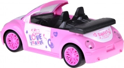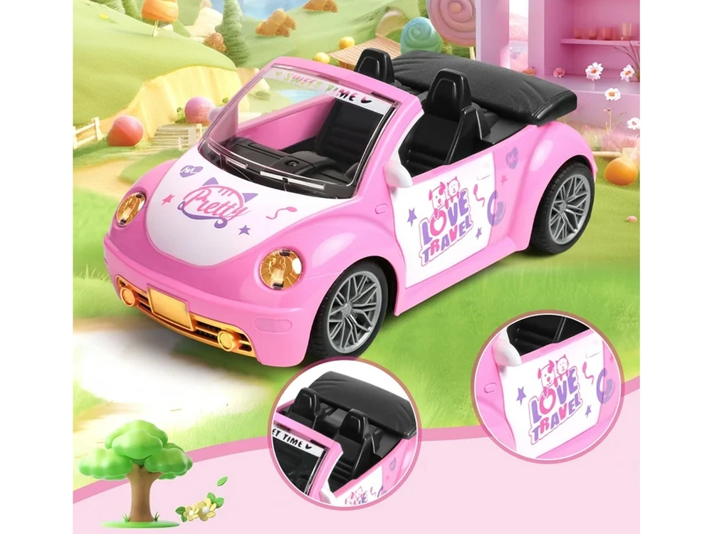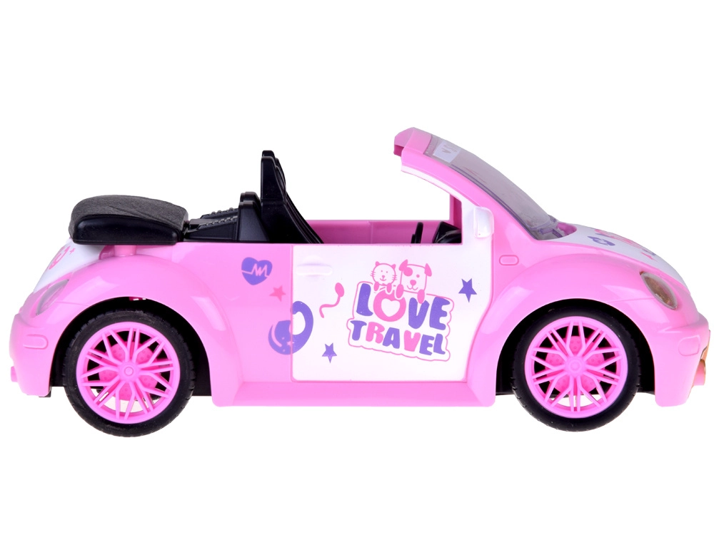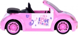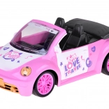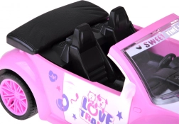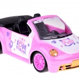 Otvorený kabriolet s detailným interiérom a dekoratívnymi nálepkami skvele doplní svet bábik a figúrok.