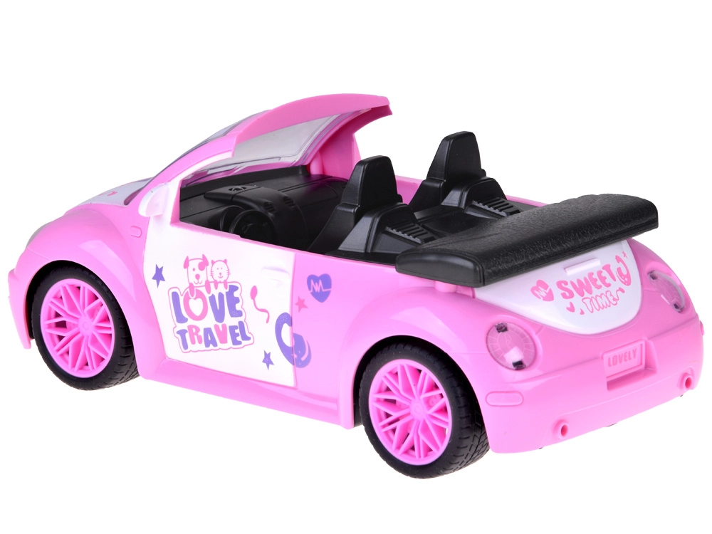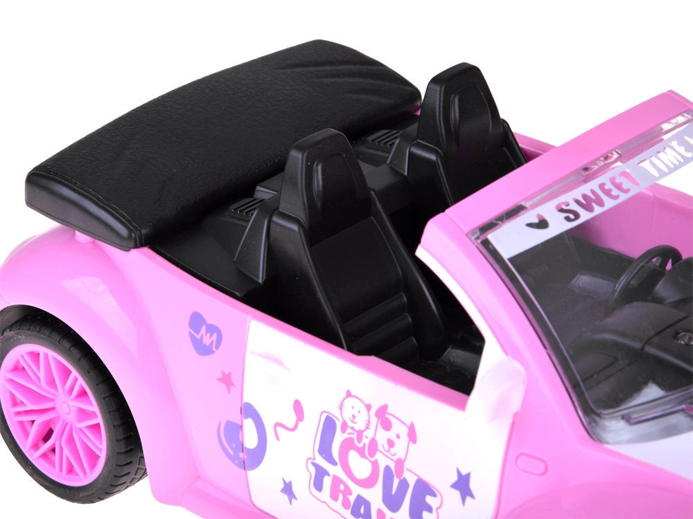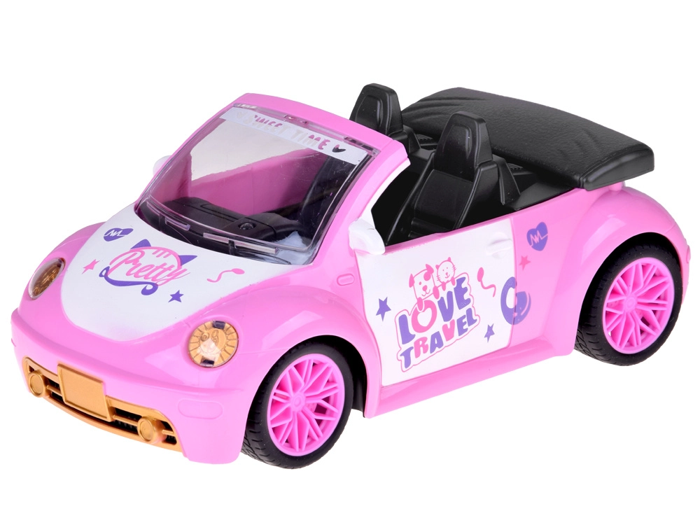Štýlové ružové autíčko cabrio pre bábiky spája atraktívny vzhľad s jednoduchým ovládaním. Deti zvládnu smer aj zatáčanie dvoma tlačidlami, pričom predné svetlomet y sa pri jazde vpred rozsvietia pre realistickejší zážitok. Ideálne do detskej izby na hladké povrchy.